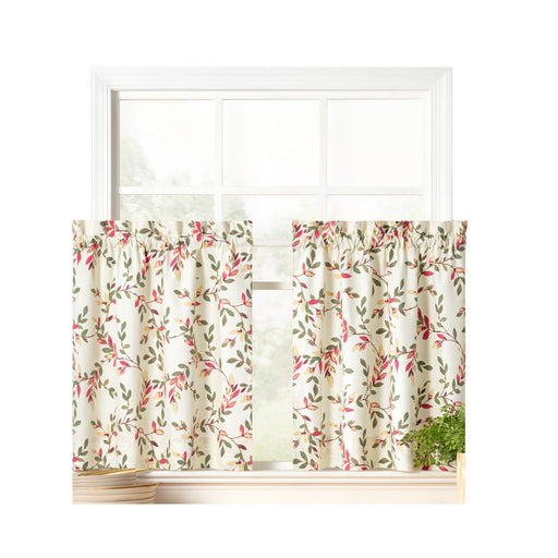 Ellis Curtain Madison Floral Design Printed Natural Ground 1.5" Rod Pocket Tailored Tier Brick